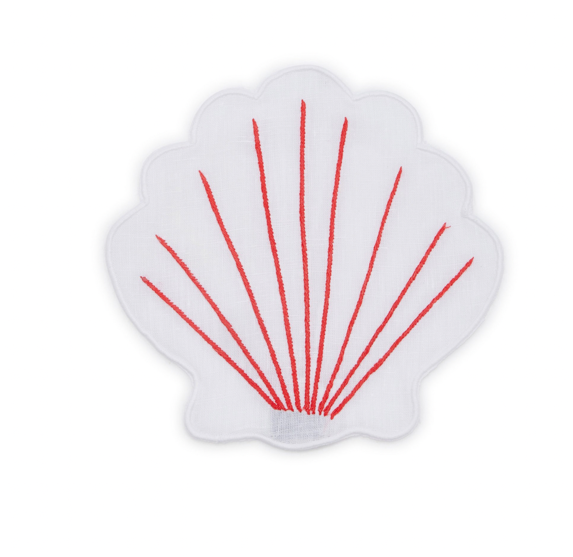 Set of four Coral Coquilles Linen Cocktail napkins. With everything from tablewear to home accessories these fanciful designs are made to inspire you to bring together friends over the culinary and visual arts.