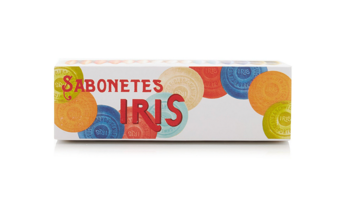 Iris guest soap box. Inspired by a 1919 original product, this guest soap is a feast to the senses. It is a tribute to the art of soap making and to the rich heritage we carry for over 130 years. Including some of our best-selling soaps, in a colorful limited edition, this is your absolute go-to gift.
